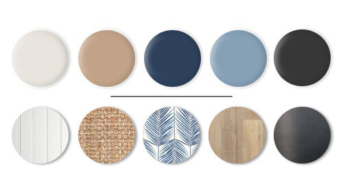 Coastal finishes are all about creating a natural, airy, and serene space that reflects the seaside. Whitewashed and reclaimed wood flooring evoke a weathered feel. Woven rope, wicker, and jute add another level of natural texture. Grasscloth and nautical patterned wallcovering reminisce the coastal landscapes, while elements like glass, mother of pearl, and metal provide a modern and clean touch.
