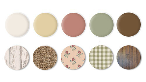 Cottage Core finishes are rustic, warm, and bring a sense of whimsy. The flooring is reclaimed or distressed wood, while stone or brick are used for quaint fireplaces. Walls are painted beadboard or adorned in small patterned botanical wallcoverings. Furniture showcases natural fiber textiles like cotton and linen in pastel colors. Hand woven and braided rugs soften the space & create a cozy feel.