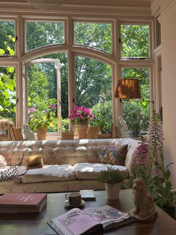 Cottage Core design style emerged in the late 2010's as a design, fashion, and lifestyle trend. The style reflects a longing for simpler, rural life, characterized by romanticized ideas of living in harmony with nature, self-sufficiency, and traditional domestic tasks like gardening, baking, and crafting. Particularly, the English countryside cottage architecture and Art and Crafts artisan furniture, textiles, and decor are the foundation of this design style.