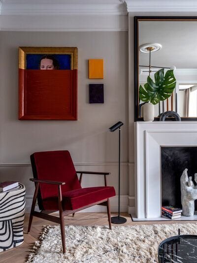 Eclectic interior details are defined by the combination of varied styles, materials, and influences. For example, Gothic arches with Renaissance moldings and Modernist light fixtures create a space that feels both rich and layered. This approach embraces contrast and juxtaposition, blending old-world charm with modern elements to create visually engaging and personalized space.