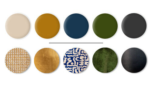 When interior details and furniture are widely varied in Eclectic style, it is ideal to create harmony & balance with a cohesive color palette and finishes that can play well with all styles. By mixing finishes like rattan, brass, bold patterns, velvet, and matte black metals, there is subtle connection to old world charm and modern details. It is key to layer these finishes throughout the space to create visual interest.