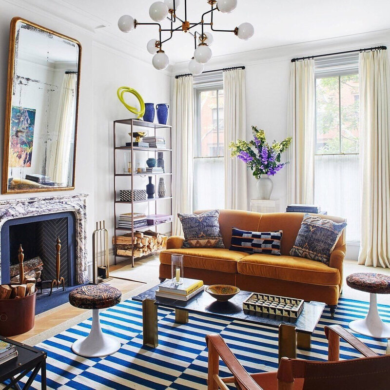 Eclectic decoration has no limit to the variety, combining elements from different eras, styles, scales, and cultures to create a unique aesthetic. Decoration will still be balanced with focal point pieces like a gilded mirror or art, paired with minimal sculptural pieces like a bust or vase, and the final touch of bold pattern through rugs or pillows.