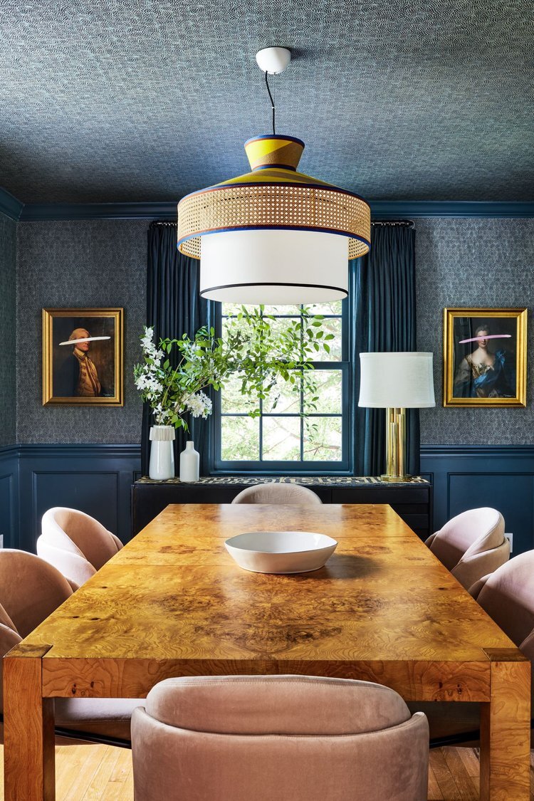 A mix of lighting fixtures that range from bold to subtle statements in a variety of finishes and shapes, all working together to enhance the visual complexity and character. For example, anchoring the room with a large layered fabric pendant, then adding some shine with a metallic lamp, and finishing the room with a sculptural wood sconce.