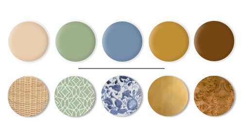 Grandmillenial interior finishes embrace the vintage charm with contemporary elements to create a space that feels nostalgic yet fresh. Vintage inspired finishes are chintz and embroidered textiles, damask and toile wallpaper, & woven wood rattan elements. While more contemporary finishes like geometric patterns, bright brass, and rich burled wood bring contrast to the vintage sophisticated space.