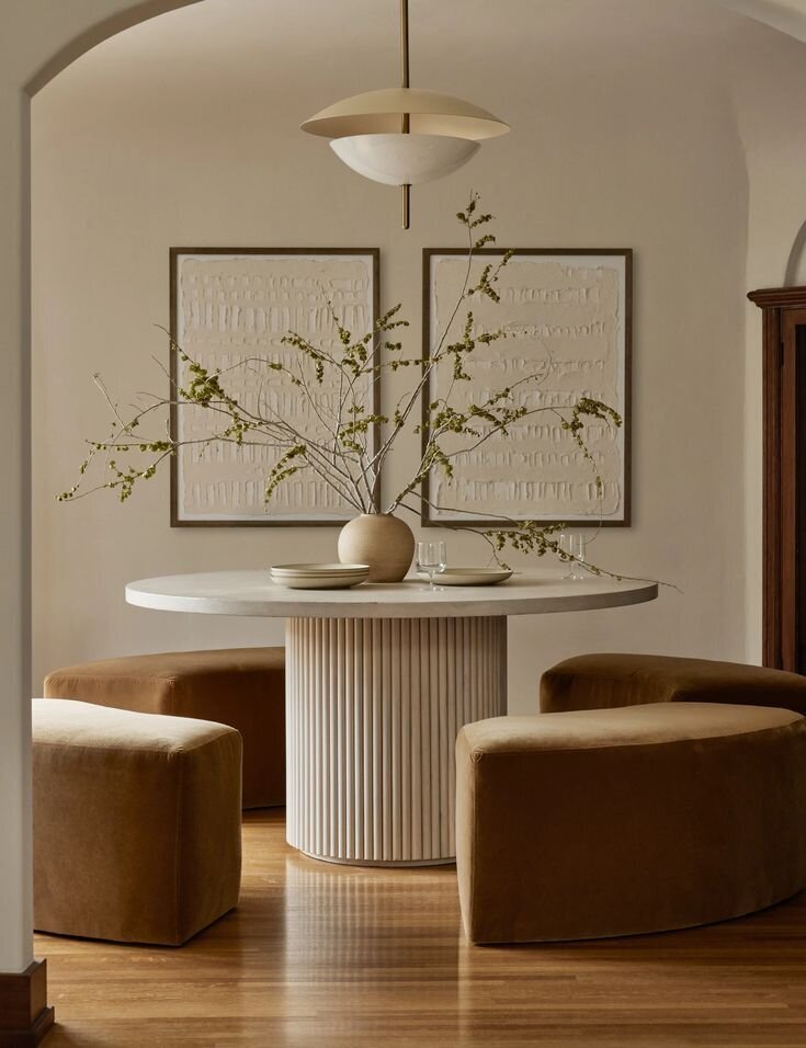 Japandi decoration focuses on the deep connection to nature and serenity. Potted plants, such as the Japanese maple or bonsai tree, brings life and a natural connection. Landscape or abstract art brings dimension & contrast, while handmade pottery provides authenticity and imperfection, connecting back to Japanese wabi-sabi ideology.