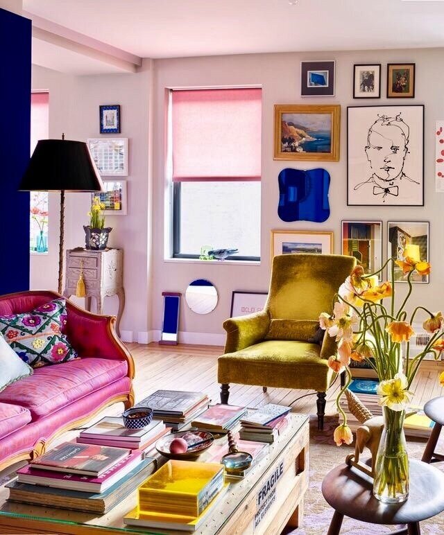Furniture plays a central role in creating vibrant, eclectic, and layered spaces. By mixing color and patterns with diverse styles and quirky details, the space is filled with character and individuality. For example, a traditional sofa with a bold modern fabric paired with a minimal side table with bright finishes creates an unexpected playfulness.