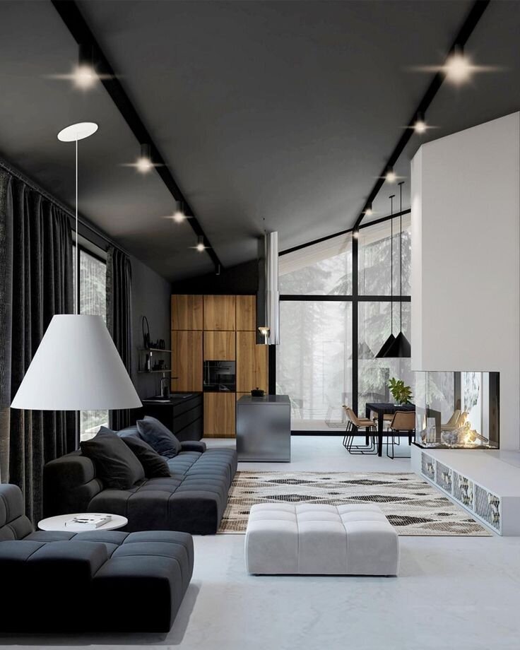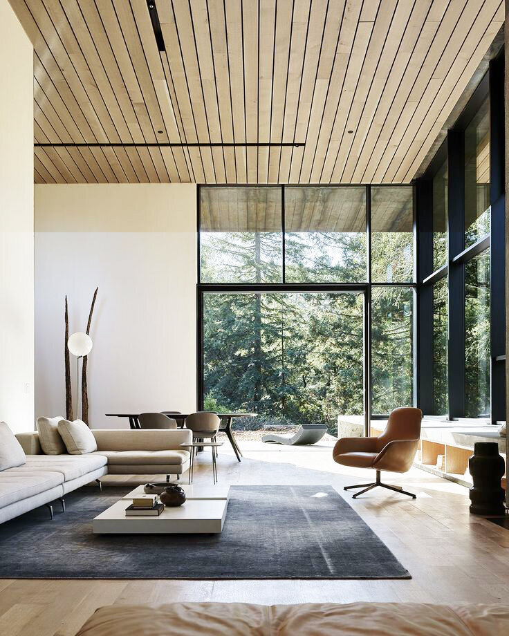 A Modern home promotes open functional spaces, simplistic geometric forms, and showcase structural materials. Natural light is important and achieved through floor to ceiling windows and skylights. Rectilinear forms dominate the style through architecture, cabinetry, and furniture. Structural metal beams and concrete columns are minimally detailed to show beauty in simplicity.