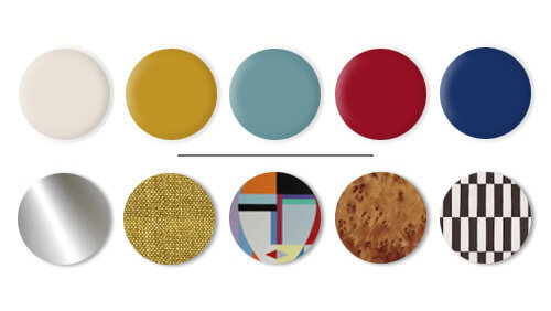 Post Modern interior finishes emphasize a mix of textures, colors, and materials, creating a lively and engaging atmosphere. Bright and saturated colors are key, along with graphic murals or fabric patterns. Unique finishes like high-gloss lacquer, burled wood, and zebra stone create impact. Mixing soft finishes like velvet & suede with shiny finishes like polished chrome & mirrored glass create a dynamic juxtaposition.