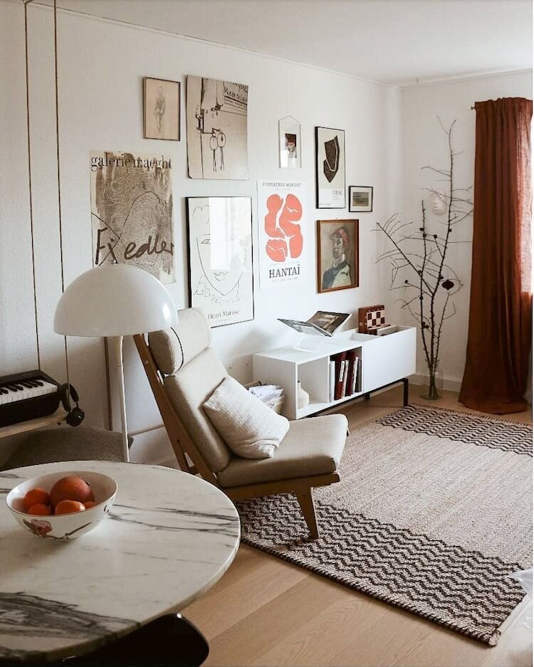 Scandinavian decoration focuses on minimalist design, personal touches, and a cultural nod back to Nordic countries. Nordic motifs like sculptural birds symbolize fertility & protection. Abstract art is widely used due to Hilma Klint being the Swedish pioneer of abstract art. Interior plants & soft decor like knot pillows bring life and texture.